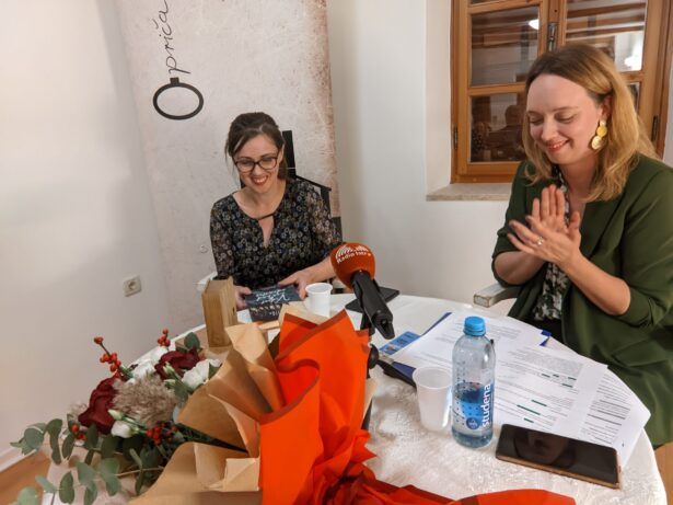 Razgovor s autoricom moderirala je Ana Galant, a tijekom susreta Kozina je otkrila što joj znači ova nagrada, kako općenito doživljava priznanja, te govorila o vlastitoj motivaciji i ciljevima u pisanju. Zainteresirana publika imala je priliku čuti i nekoliko odlomaka iz nagrađene zbirke.