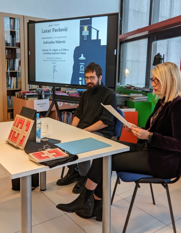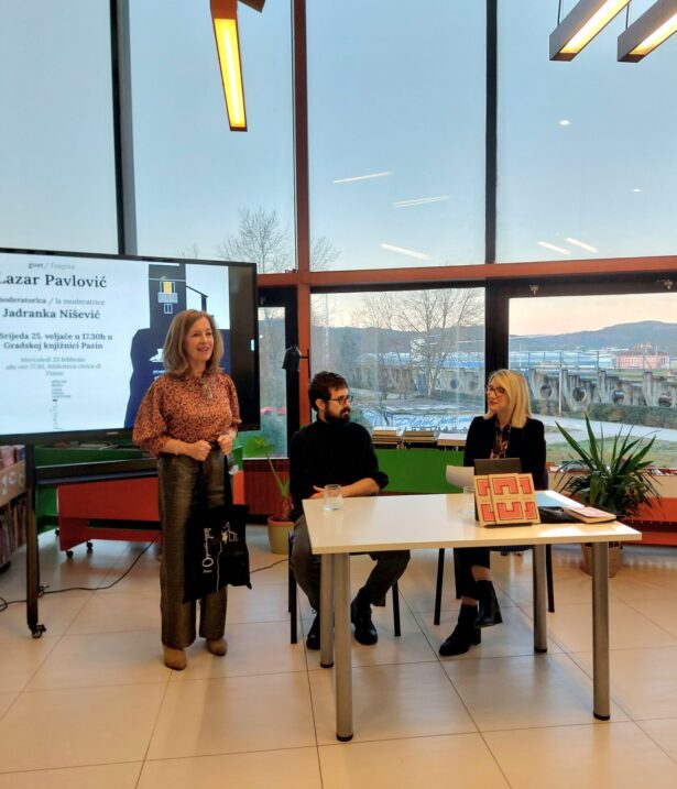 Sljedećeg dana, u srijedu, u prostoru Gradska Knjižnica Pazin održano je književno druženje i susret s Književnikom. Razgovor je moderirala poznata radijska voditeljica i urednica Jadranka Nišević. Publika je imala priliku saznati više o Lazarovim uzorima, književnim utjecajima, motivaciji za pisanje, planovima za buduće projekte te o doživljaju Pazina i Istre. Hvala Ministarstvo kulture i medija Republike Hrvatske na potpori.